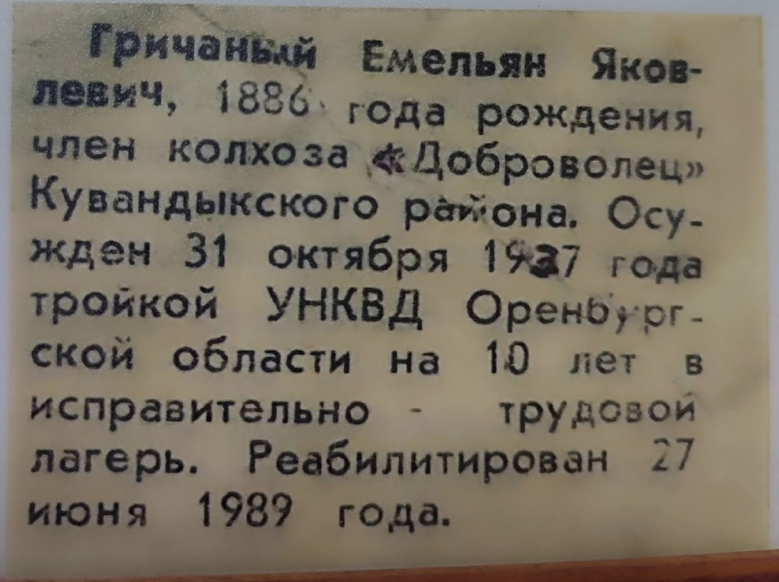Музейно-выставочный центр собирает и бережно хранит информацию о жертвах репрессий Кувандыкского края. В предверии этого памятного дня музей посетилаТатьяна Владимировна Полторенко, передав в экспозицию музея фотографии, копии выписок из протоколов, анкеты, газетные статьи, а также электронный вариант книги "Жизнь поколений" о своих родственниках, ставшими жертвами репрессий.