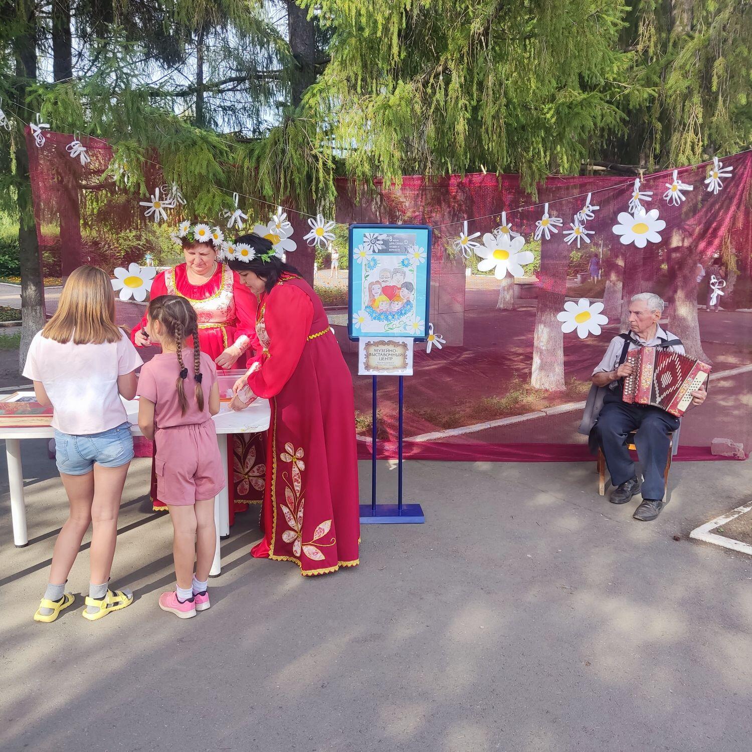 Ежегодно 8 июля отмечается важный российский праздник — День семьи, любви и верности. В этот день сотрудники музейно-выставочного центра организовали для посетителей парка ДК Криолит акцию "Ромашковое счастье". Самые маленькие гости этого вечера попробовали свои умения в изготовлении браслета-ромашки, а взрослые с трепетом рассматривали памятный фотоальбом жителей Кувандыка, зарегистрировавших свой брак в период с 1977 по 1983 гг.