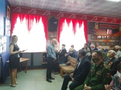 26 апреля 2021 г. в зале «Боевой славы» Кувандыкского музейно-выставочного центра состоялась встреча с ликвидаторами аварии на Чернобыльской АЭС 26 апреля 1986 г. Сегодня исполнилось 35 лет со дня аварии. Подвиг, который осуществили ликвидаторы аварии, никогда не будет забыт. Встреча началась с приветственных слов замглавы по соц. вопросам Ремнева Г.Г. и начальник отдела культуры Зобенко С.В. Своими воспоминаниями поделился председатель общественной организации Союз «Чернобыль» Баев А.Ф. На мероприятии состоялось вручение памятных медалей участникам ликвидации (вручал военный комиссар г. Кувандыка и Медногорска Резвых М.А.). В этот день художник и ликвидатор аварии на ЧАЭС С.М. Шонгин передал две свои работы на память о тех событиях в фонды музея.