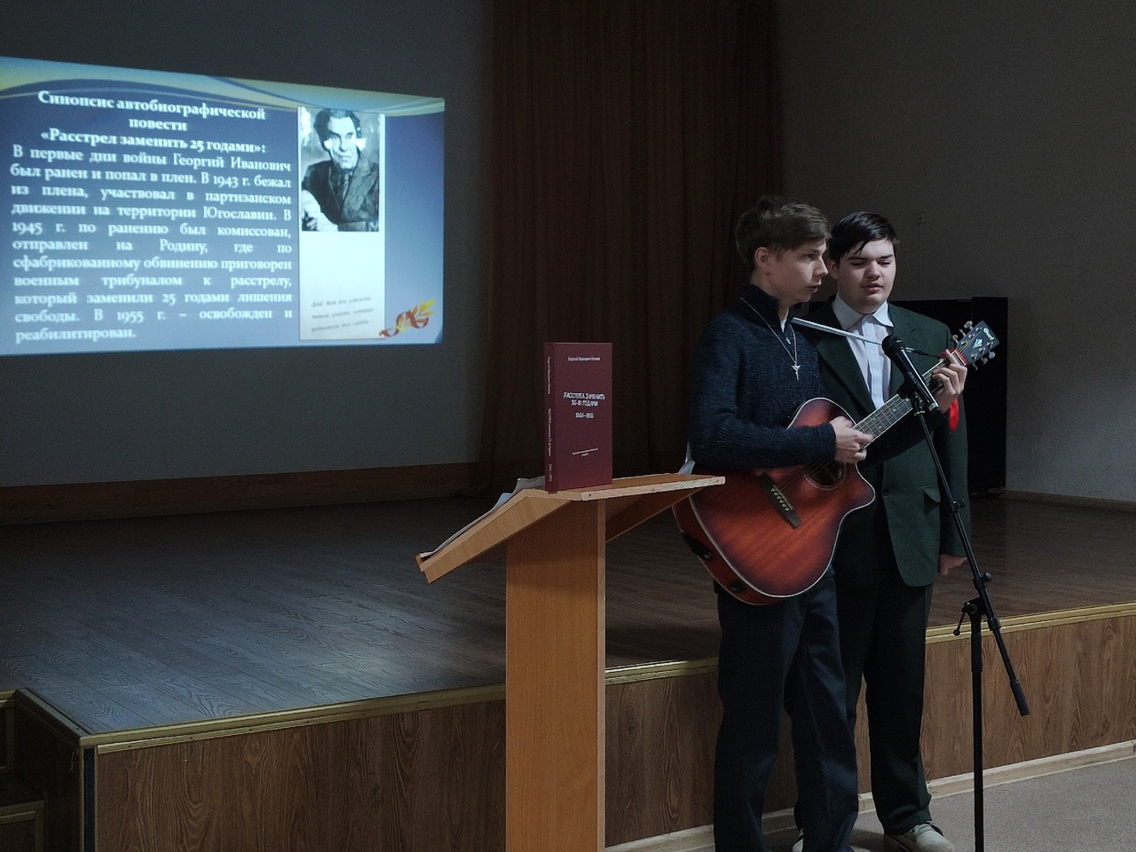 Для присутствующих прозвучали музыкальные композиции в исполнении В.П. Калачева и его учеников Ярослава Паршина и Савелия Крыльцова.