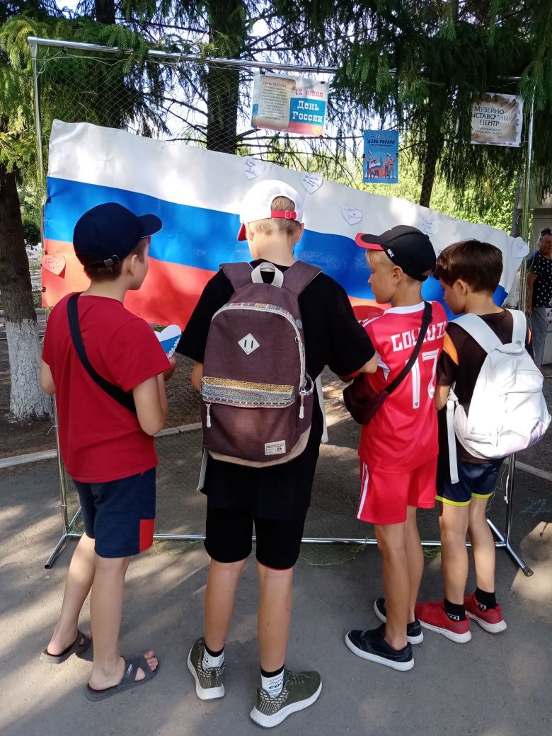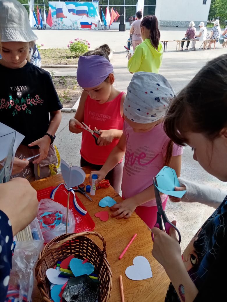 Сотрудники музейно-выставочного центра приняли участие в праздновании Дня России, организовав для посетителей концерта у ДК "Криолит" музейную площадку "Люблю тебя, моя Россия". Все желающие на российском триколоре прикрепляли сердечки с надписями, что для каждого из них значит Россия. А самые юные участники празднования пробовали свои силы в изготовлении триколора своими руками в необычной форме.