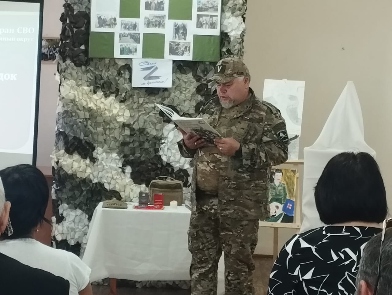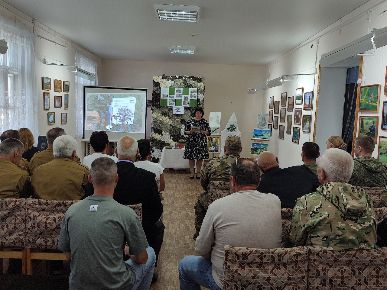 1 июля в России отмечается памятная дата – День ветеранов боевых действий. Сегодня сотрудники музейно- выставочного центра пригласили участников боевых действий в Афганистане, Чечне, СВО. Гости музея присутствовали на презентации сборника «Жизнь за други своя». Это уникальный сборник воспоминаний и заметок участников Специальной военной операции. Это стихотворения, рассказы, записки из дневника о героических свершениях, военных буднях, фронтовом товариществе, самопожертвовании и солдатских сердцах, в которых главное место занимают дом, родители, дети, близкие.Для присутствующих были зачитаны несколько произведений из этого сборника. Отрывок рассказа был зачитан и самим участником СВО Вячеславом Броницким.