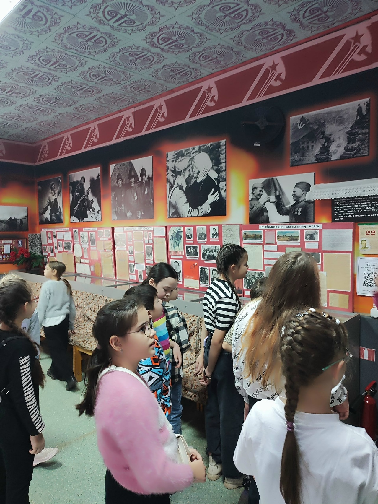 13 ноября музей посетили юные художники, только начавшие обучение в детской школе искусств. В выставочном зале преподаватель ДШИ Хисматуллина И.Б. познакомила ребят с отчетной выставкой художественного отделения ДШИ «Цвета памяти: от черного дыма к синему небу», посвященной 80-летию Великой Победы. Ребята познакомились с натюрмортами и иллюстрациями к произведениям о Великой Отечественной войне и сюжетными композициями. В продолжении темы Великой Отечественной войны дети вместе с экскурсоводом музейно-выставочного центра совершили "путешествие" в зал воинской славы, где оживают ключевые символы памяти и Победы: грохот сражений, радость возвращения солдат домой и, конечно, долгожданный мир, завоеванный ценой неимоверных жертв.