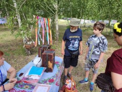 Традиционно в летний период проходит большое мероприятие "Играй, кувандыкская гармонь!". В этом году оно состоялось в п. Ибрагимово (2.07.2023). Сотрудниками музейно-выставочного центра была организована тематическая площадка "Светлый мир народной культуры", которая включала в себя: фотосушку фестиваля разных лет (фото В. Сечнев), фотозона с применением атрибутов народной культуры, выставка гармошек и мастер-класс для детей по изготовлению тряпичной куклы "Отдарок за подарок".