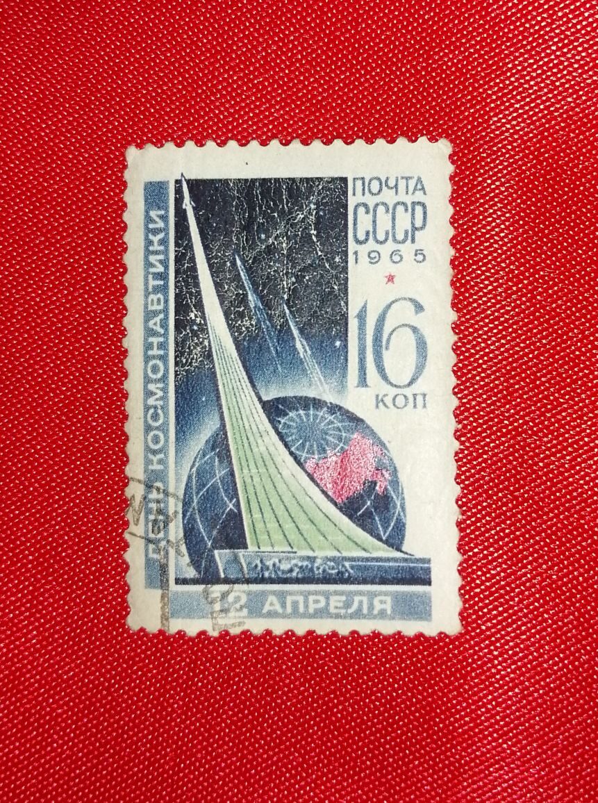 На почтовой марке 1965 г., хранящейся в фонде Кувандыкского музейно-выставочного центра, изображено – планета Земля (красным цветом акцентировано закрашена территория СССР), запуск и полет с нее нескольких ракет, «День космонавтики.12 апреля». 16 коп.
