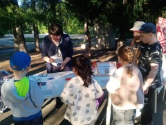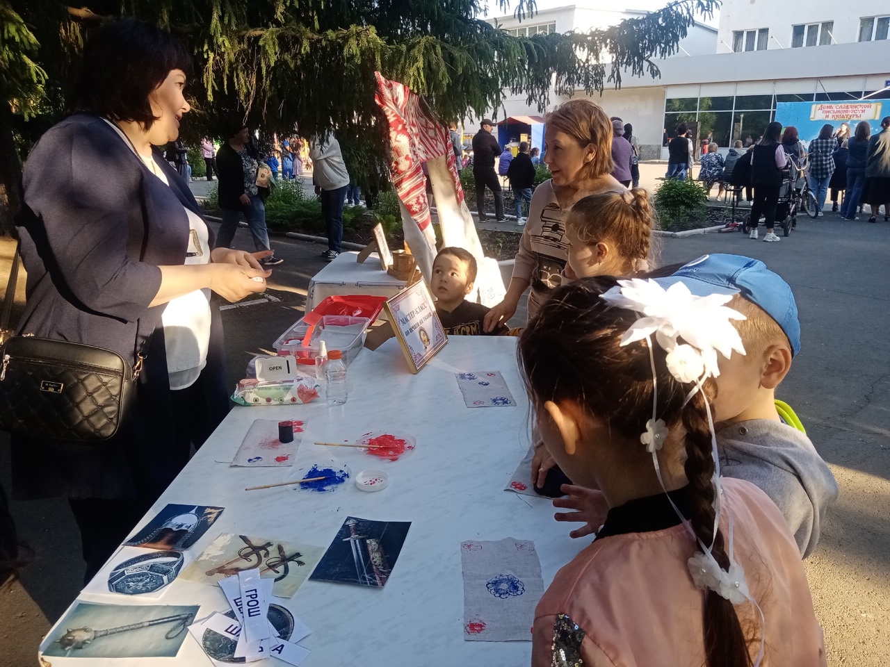 Сотрудники музея, в рамках празднования Дня славянской письменности и культуры, представили выставку-интерактив «Узоры славянской письменности» и мастер-класс по печати на ткани. Юным гостям праздника было предложено попробовать свои силы в печати на ткани акриловыми красками или в «ручной набойке по ткани», как это называлось на Руси. После вводной беседы все с удовольствием принялись за дело и убедились, как легко сделать «принт на ткани» с помощью штампов и краски.