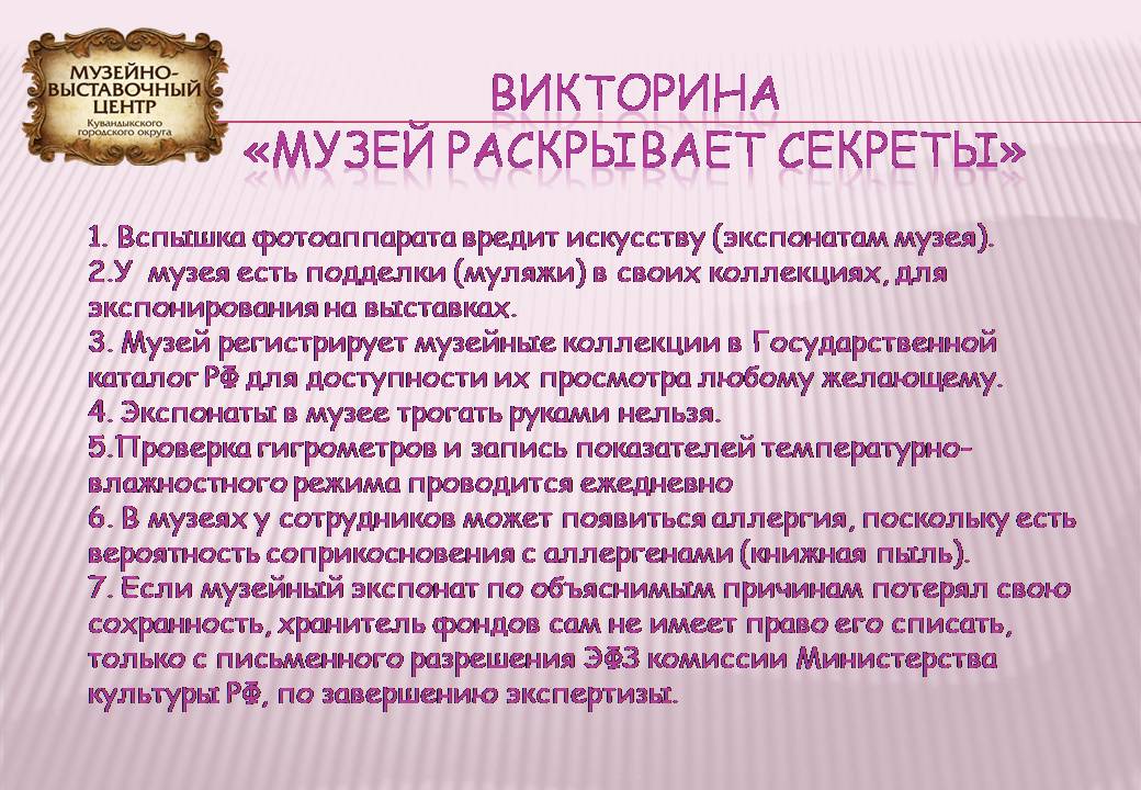 Напишите эти неверные факта на эл.почту музея:kuvmvc@yandex.ru или в личном сообщении социальных сетей: ВК или ОК Кувандыкского музейно-выставочного музея, с пометкой данной викторины.