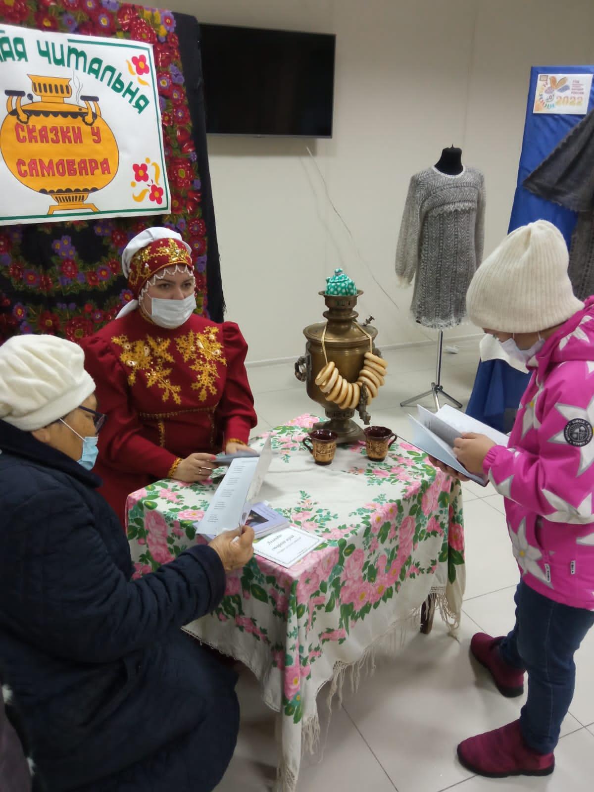 Сотрудники музейно-выставочного центра подготовили для посетителей концерта "Культурное наследие нашего края" (ДК "Криолит") выставку мастеров ДПИ и музейную читальню " Сказки у самовара", где директор МВЦ В.В. Калачева в народном костюме знакомила жителей нашего края с интересными сказами и легендами местных авторов.