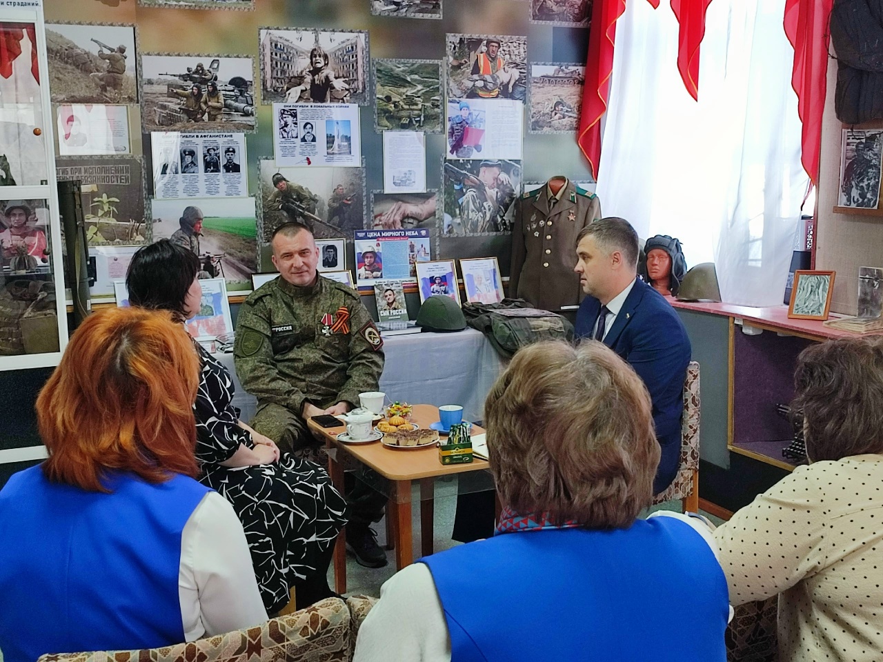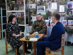 В музее состоялась встреча директора МВЦ Калачевой В.В., депутата Законодательного Собрания Оренбургской области Купинова В.И. и Стерлюхина Евгения Александровича, который является участником СВО на Украине, он поделился своими воспоминаниями о боевом пути, о ранении, о взаимовыручке и дружбе в условиях военных действий.