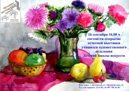 16 сентября в 16.00 ч. в Музейно – выставочном центре состоялось открытие Отчетной выставки художественного отделения Детской школы искусств. На выставке представлены академические работы по рисунку и живописи, творческие работы, керамика, предметы декоративно – прикладного искусства.