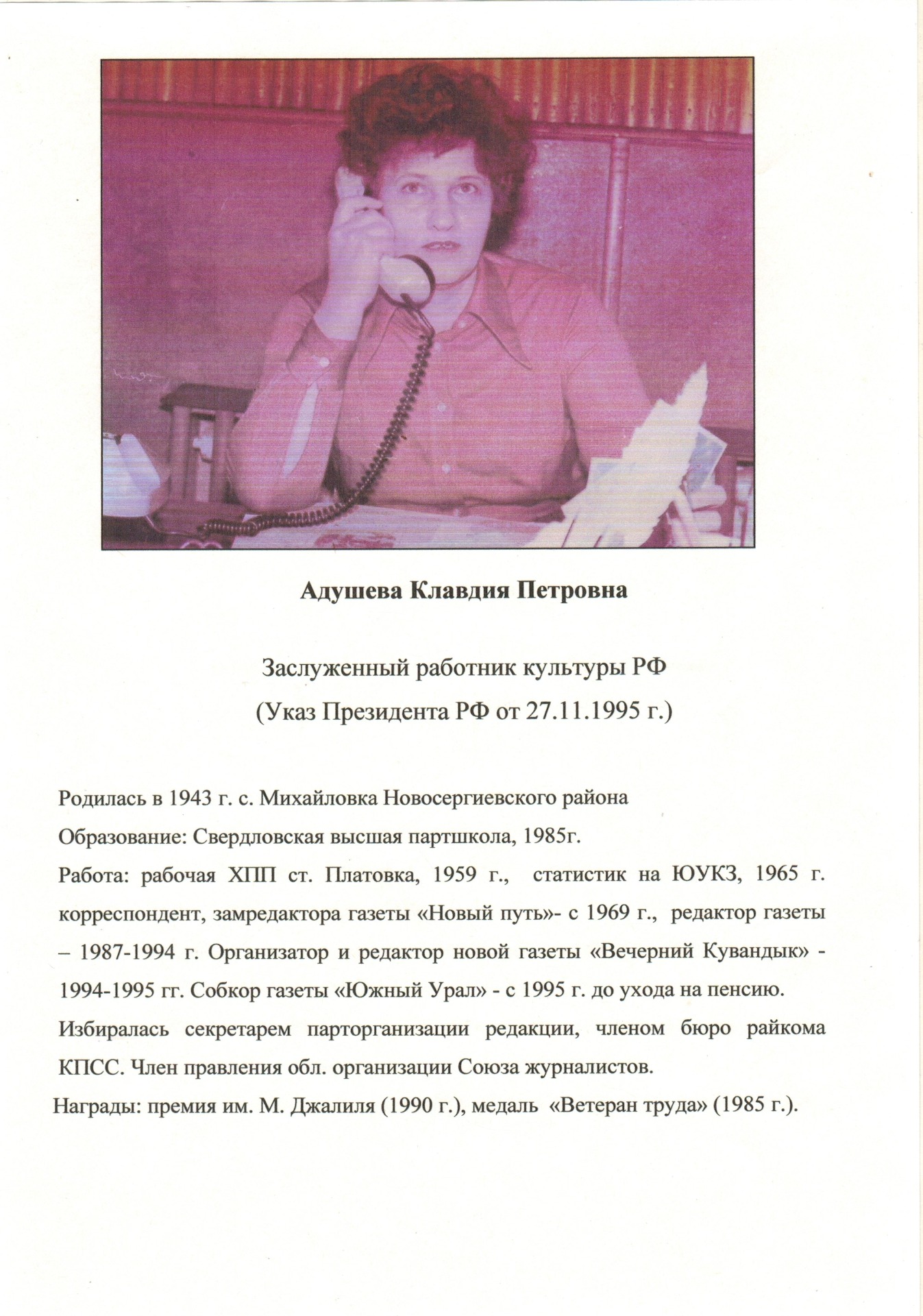 "Заслуженные работники культуры" Кувандыкского края
